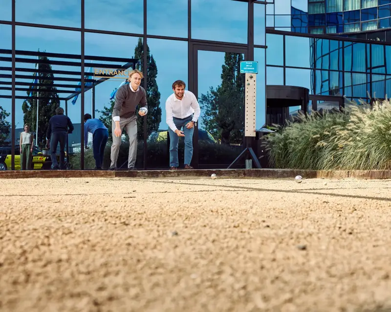 Das Van der Valk Hotel Gent bietet Ihnen die Möglichkeit, mit Ihren Freunden, Ihrer Familie oder Ihren Kollegen während Ihres Aufenthalts in unserem Hotel ein tolles Erlebnis zu haben, indem Sie den Boule-Platz nutzen. Behalten Sie mit der Punkteanzeige im Auge, wer gerade führt!