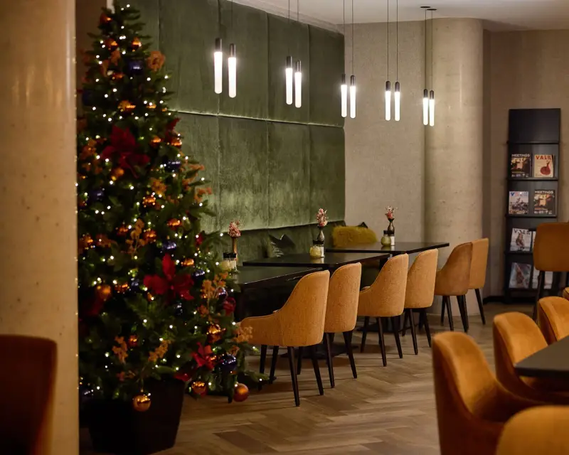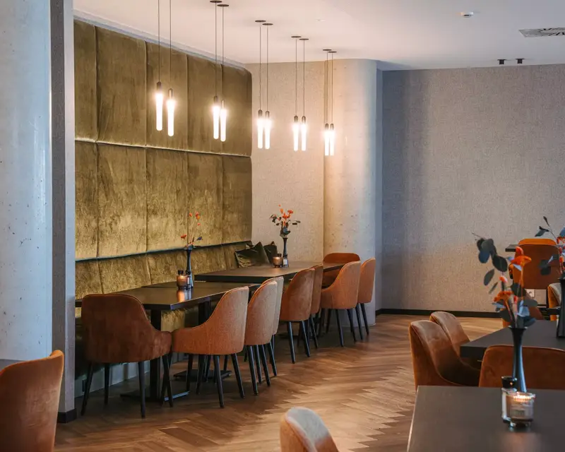 Der stimmungsvolle Raum empfängt Ihre Gäste mit einer warmen, eleganten Einrichtung und bildet die perfekte Kulisse sowohl für geschäftliche Empfänge als auch für Jubiläen und andere Feierlichkeiten.