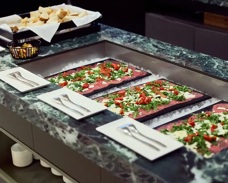 - uitgebreid buffet met verfijnde koude en warme gerechten