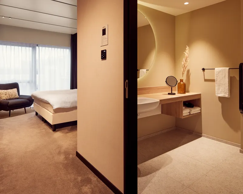 Profitez d'un séjour dans cette chambre pour personnes à mobilité réduite élégamment décorée et détendez-vous après une longue journée.