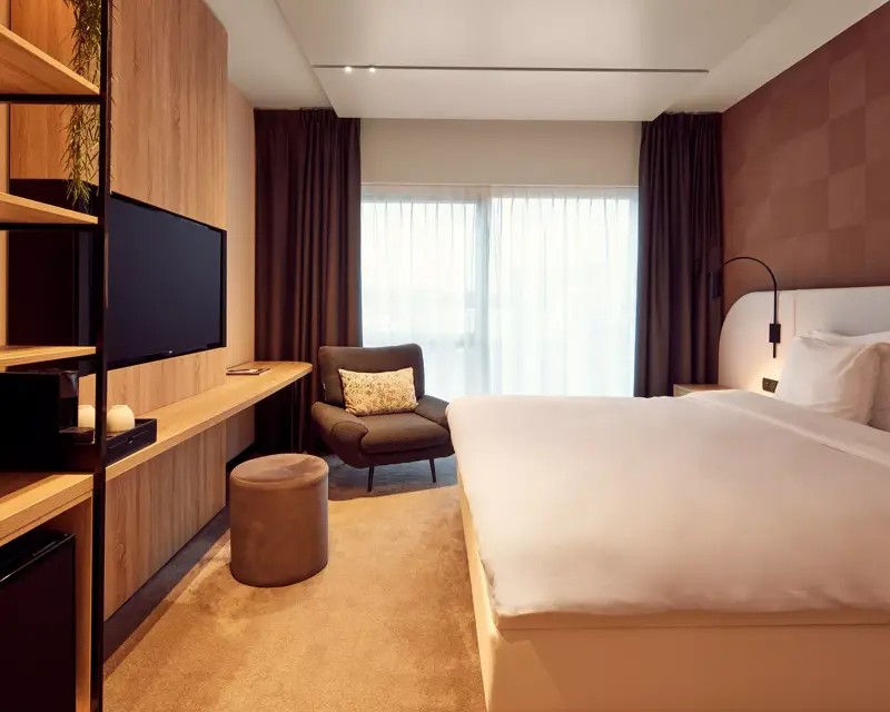 Grâce à la télévision intelligente et au Wifi haut débit gratuit, vous pouvez répondre rapidement à vos e-mails ou préparer votre prochaine réunion, avant de profiter d'une nuit de sommeil réparatrice dans nos grands lits King-size.