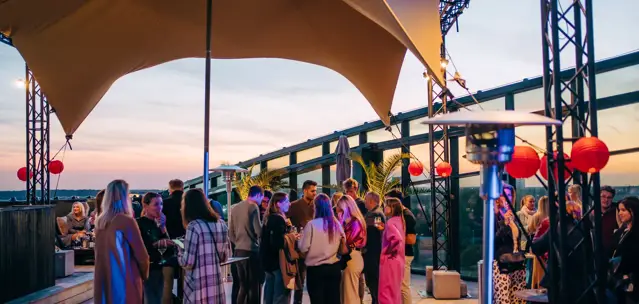 À la recherche d'un lieu unique pour votre prochain événement ? Le skybar au 10ème étage de l'Hôtel Van der Valk à Gand offre une vue panoramique sur la skyline de Gand et est disponible tous les jours pour des événements privés jusqu'à 220 personnes.